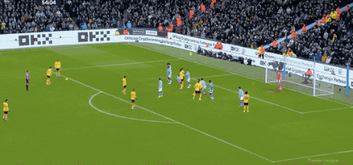 第54分钟,胡桑诺夫推人犯规,狼队获得前场位置不错的任意球,若昂·戈麦斯的射门打在球网上方。